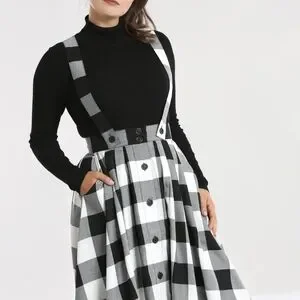 Stylish A-line skirt by Hell Bunny. Features a classic black and white checkered pattern. Button details and adjustable straps. Top is not included.