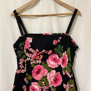Sara Campbell 97% Cotton Black with Pink Floral Fit and Flare Dress a232