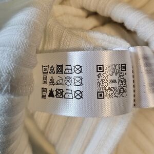 Zara Women's Super Soft White Ribbed Midi Skirt, Elastic Waist, LARGE