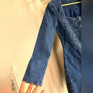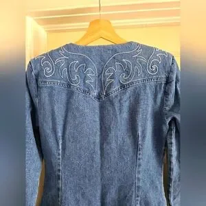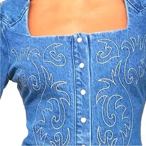 Avec Les Filles Western Embroidered Long Sleeve Denim Dress
