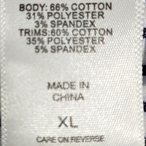 Hello again! The tag has been uploaded, but it's 66% cotton, 31% polyester and 3% spandex. The trim is of the same materials, just different percentages. Hope this helps!🙂❤️