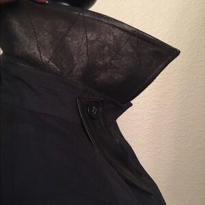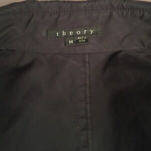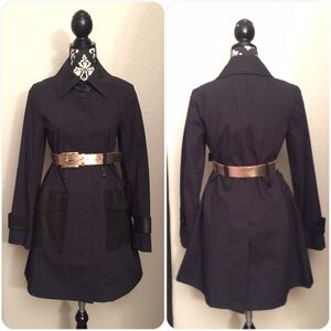 Gorgeous and an unbelievable deal!! This is the CEDRICA COLISEUM coat, in black, by theory!! Perfect for the upcoming seasons! You will look fabulous! Single breasted trench in black. Tonal pebbled leather trim. Removable curved button tab at spread collar. Removable genuine leather belt and double loops at waist - the model is wearing it on the top belt loop. Flap pockets at hips. Button tab sleeve cuffs. Tone on tone stitching. Immaculate condition missing belt. I'm including an MK belt.