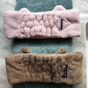 Cute Pink and Brown Elastic Cat Ear Headbands. Wear when washing off makeup