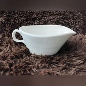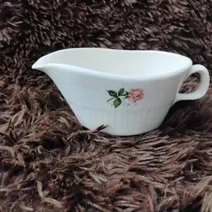 50s Vintage white gravy boat with a delicate pink rose design. Perfect for serving creamer, sauces and gravy.