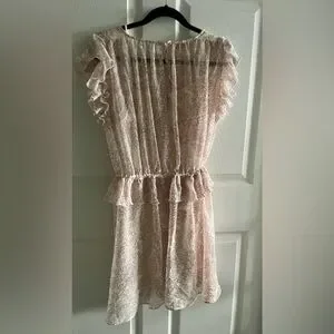 Ted Baker Evelyna Printed Texture GGT Mini Dress - Size 3 / US Medium New with tags Color: Ivory MSRP: $295.00 Flowing with a coral-inspired print, the Evelyna minidress from Ted Baker features whispy ruffles at the sleeves and waist. V-cut neckline Short ruffle sleeves Ruffle design across front waist Tie-knot waist button closure Allover floral-inspired pattern design Skirt hemline 100% polyester