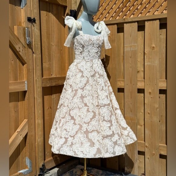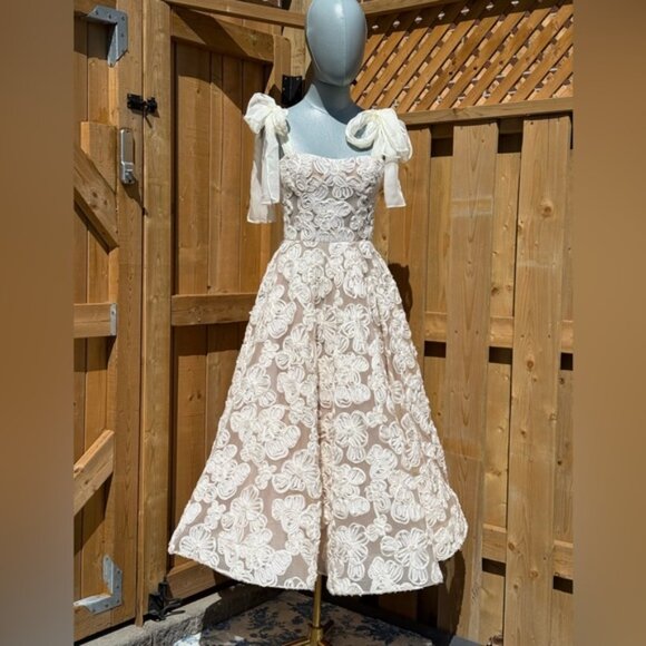 Elegance meets whimsy in Bronx & Banco's Sabrina Bridal Midi Dress from "La Danse Blanche" bridal collection.