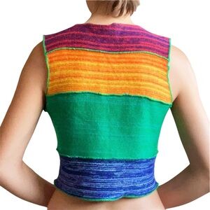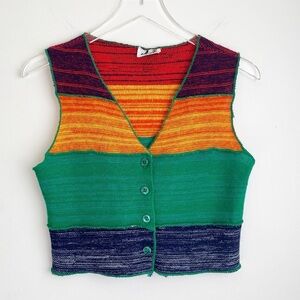 Vintage rainbow colorful knit sweater vest button up cropped v neck small stripe