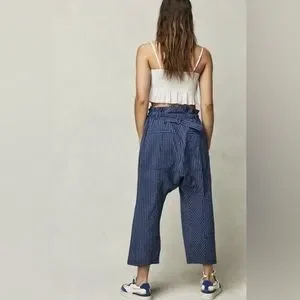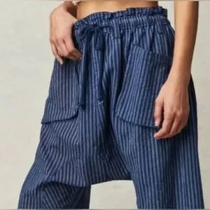 Free People Runyon Oversize Stripe Pant Harem Blue Drawstring Medium