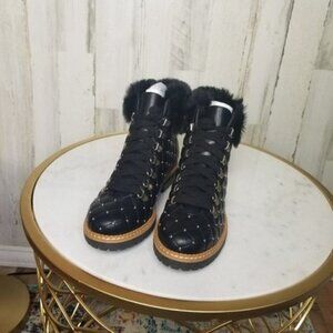 Classic hiker style gets a glam-girl upgrade in the sparkling stud accents and plush faux-fur collar on the fun Pravale booties from I.N.C. International Concepts.