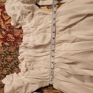 Thin elastic waistband and elastic neckline is very stretchy. Can be worn on or off shoulders.