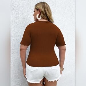 Button Front Lettuce Trim Top Size 0 XL Color: Brown