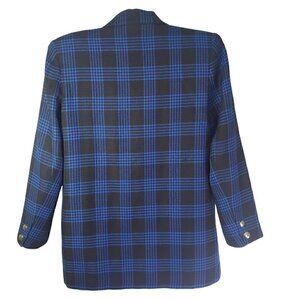 Like new! Only worn once. This muted blue and black striped plaid is so classic! Beautiful slightly oversized fit on jacket, with some padding at shoulders to give a retro inspired look. Fit true to Dynamite sizing. size 8.