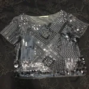 Gorgeous metallic crop top with beading throughout! Size XS. True to size. None stretch material!