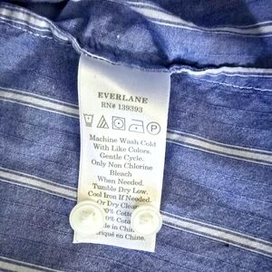 Everlane Womens Button Up Shirt Blue White Striped Long Sleeve