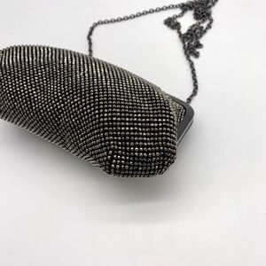 INC International Concepts Patsy Diamond Mesh Frame Clutch Crossbody bag PewterColor: PewterProduct DetailsDiamond-shaped mesh with a top kiss-lock closure. I.N.C. International Concepts Patsy clutch puts a gorgeously glam spin on any look.Small sized bag; 9"W x 6"H x 1-3/4"D (width is measured across the bottom of handbag)Silhouette is based off 5"9" model24"L removable strapSnap-frame closureGunmetal-tone exterior hardware1 interior zip pocket; fits an iPhone 8 Plus or smaller modelCreated for Macy"sPolyester/metalImportedNow with tagsRetail value:$79.50
