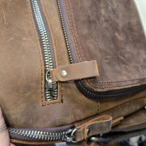 Crafted for the modern man on the move, The Real Leather Company's messenger bag combines functionality with timeless style. With its solid brown leather exterior and durable leather lining, this medium-sized purse is ideal for business travel and outdoor adventures alike. The adjustable shoulder strap ensures a comfortable fit, while the zip closure keeps your essentials secure.