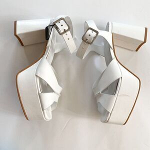 EMANUELE CASTRO White Made In Italy Leather Platform Heel Sandals Women’s US 9