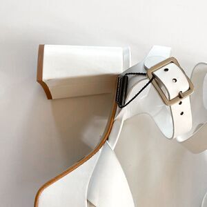 square toe, cut out accents, block heel, platform style, chunky platform sandal, white flatform sandal, Mary-Jane sandal, platform Mary-Jane sandal, flatform, girlcore, Barbiecore, stealth wealth, quiet luxury