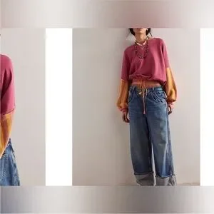 NWT Free People We The Free Stripe Cuff Pullover - Sunrise Combo - Small