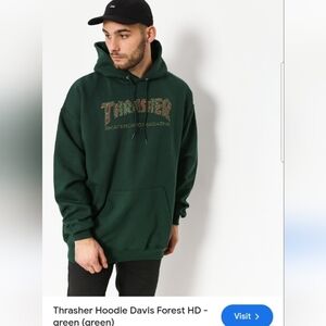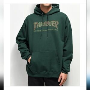 Thrasher Forest Green Hoodie, Aztec Logo.