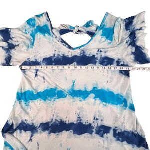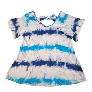 Lane Bryant Swing Tee Plus Sz 14/16 Blue Tie Dye Boho Tie Back Flowy Casual Top