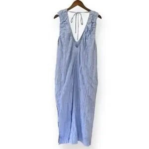 Free People Dress Agatha Midi Blue Long Oversize Boho Textured Lagenlook Medium