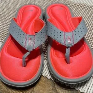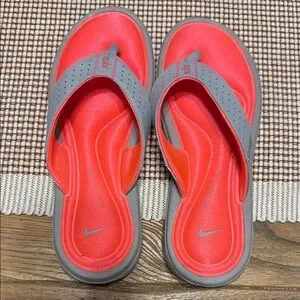 Nike sandals in vibrant pink and gray. Comfortable and stylish. Like brand new!!