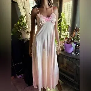 Vintage 1970s Lov’Lee Light Pink Nightgown with Crochet Butterfly (S)