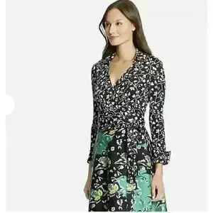 Diane von Furstenberg Amelianna 3/4 Sleeve Wrap Dress Cotton Silk Blend Sz 10