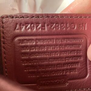 Elevate your style with the Coach Burgundy Signature Tote Bag. This elegant bag features a rich burgundy color, perfect for any occasion. Crafted with the iconic Coach design, it combines luxury and functionality. Preloved and beautiful