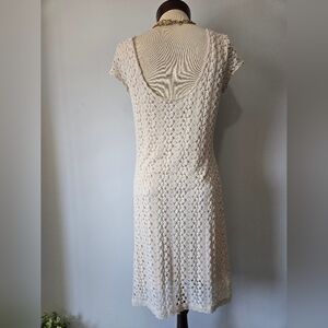 FREE PEOPLE Crochet Knit Cream Dress With Slip Lining. Size Large