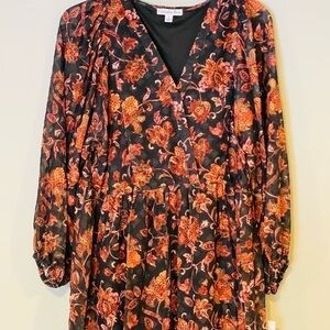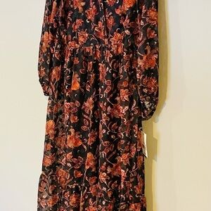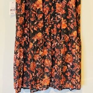 NWT size S black lined with a sheer floral overlay color red, orange black pink