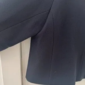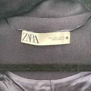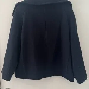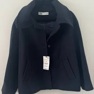 Short coat made of wool blend fabric. Shirt collar and cape sleeves. Front pockets. Contrasting interior lining. Front button closure.