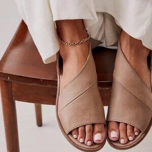 Free People sandals, Mont Blanc sandals, asymmetrical sandals, leather sandals, boho sandals, brown leather sandals, summer shoes, women’s size 9.5 shoes, Free People shoes, slip-on sandals, comfy summer sandals, festival sandals, boho chic footwear, stylish flat sandals