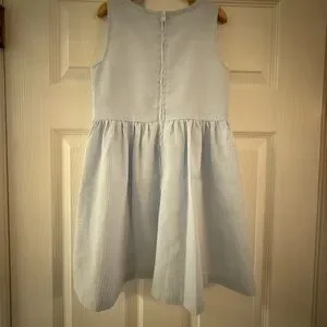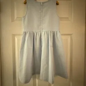 Charming kids dress in a soft blue with delicate lace trim. Perfect for any occasion.