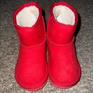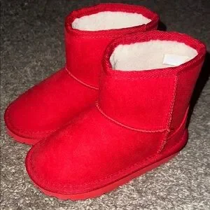 Experience warmth and style with these GAP red boots, featuring a plush lining and a soft suede-like exterior. The pull-on design and flat sole ensure comfort for casual wear, while the vibrant red color makes a bold statement.