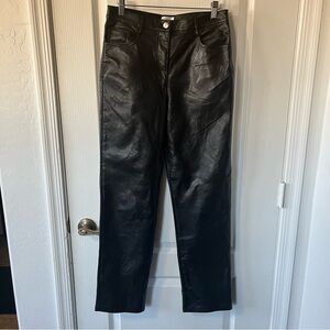 These are high-rise straight-leg pants with five-pocket styling and a universally flattering fit. They’re made with our innovative Vegan Leather that looks and feels like the real thing.