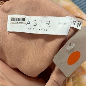This stunning gown by Astr the label (bought at urbn sample sale warehouse w tags) features a vibrant orange hue, perfect for making a statement at weddings ceremonies or cocktail events. The dress boasts a pleated and ruched design with a halter neckline, offering a sophisticated and elegant silhouette. Its sleeveless style and maxi length make it an ideal choice for formal occasions.