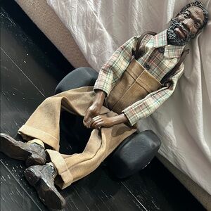 Unique figurine goes by the name of UNCLE LEON with a plaid shirt and brown pants. Features intricate details and craftsmanship MADE TO BE TIMELESS (is this not how we dress today). Uncle Leon has been loving my book shelf.. He has recently requested a change of scenery!!!