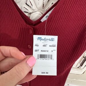 Madewell Ribbed V-Neck Tank Top Button Down • Size S• NWT