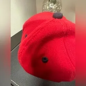 Colors: red with white logo and navy blue bill