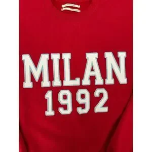 - bright red color with MILAN text graphic print
