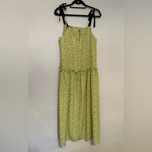 NWT Topshop Floral Print Drop Waist MIDI Dress, Size 6 US Women’s “Lime” Color