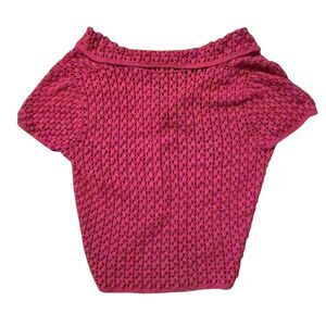 Y2K Inc Sweater Vest Size L Petal Pink Crocheted Coastal Beachy Festival 90's