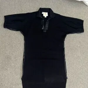 Leather and black maxi dress, in the picture it looks as if it has a stain on the bottom- it was the lighting i can send better pics if interested! Loved this dress just never had anywhere to wear it to! Such a cute cut on the bottom of dress too! Size XS but fits as a small!