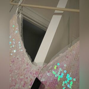 NWT! Lulu’s white sequin iridescent, mini dress with adjustable straps. XL.
