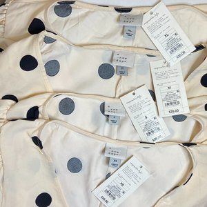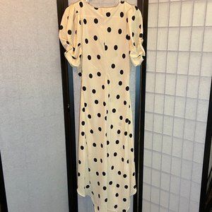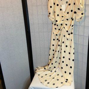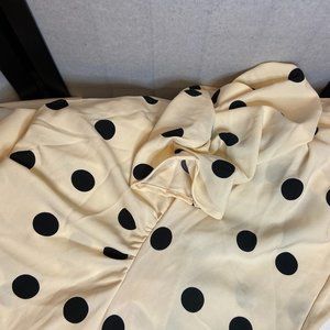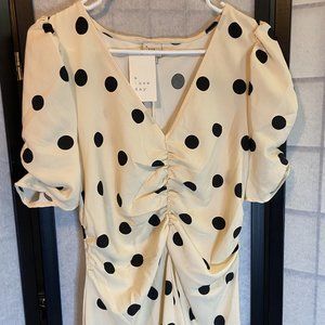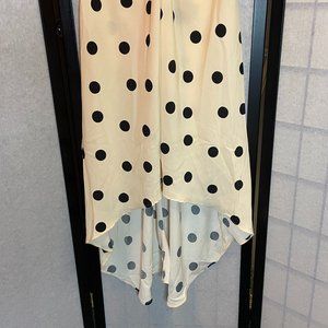 A New Day Crepe Rouched Cinched High Low Dot Dress Cream/Black NWT Short Sleeve