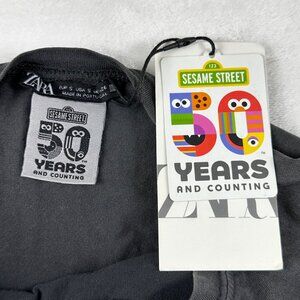 Fun Zara men’s graphic T-shirt featuring Big Bird from Sesame Street in a Mona Lisa parody design. Made from soft black cotton fabric with short sleeves and a crew neckline. Comfortable and casual with a relaxed fit, perfect for everyday wear or streetwear style. Unique pop culture graphic adds a playful, trendy touch. Great pre-owned condition with minimal signs of wear.
