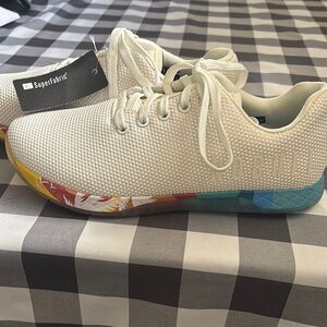 White NOBULL NWT athletic shoes, cute tropical design sides/bottom. Size 10