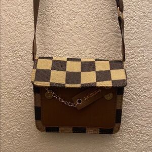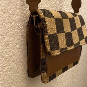 Brown and Tan Checkered Crossbody Bag